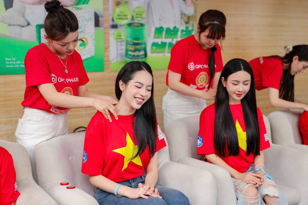 Một trong những điểm dừng chân nổi bật tại sự kiện là khu vực “Trạm Hồi sinh năng lượng OPC”, nơi thu hút đông đảo người tham gia – bao gồm cả ba nàng hậu – ghé thăm và trải nghiệm.