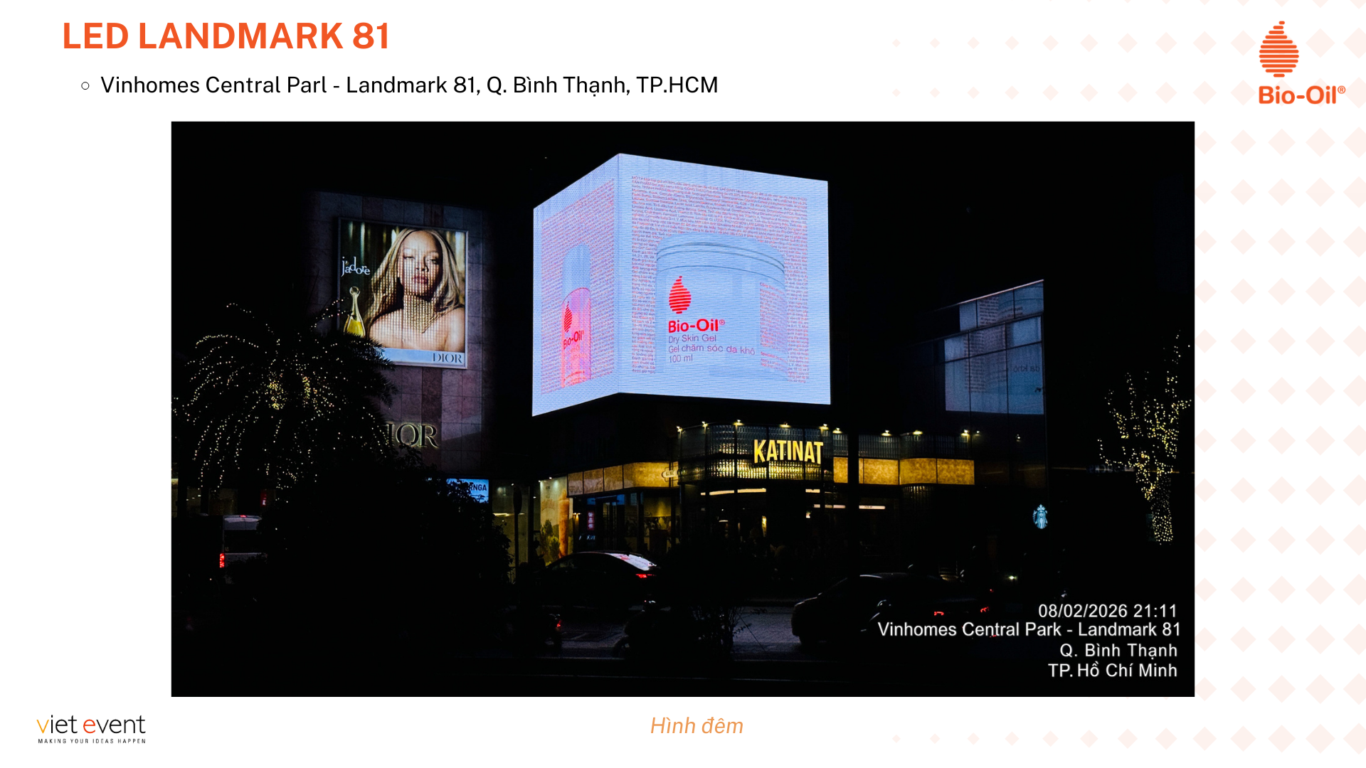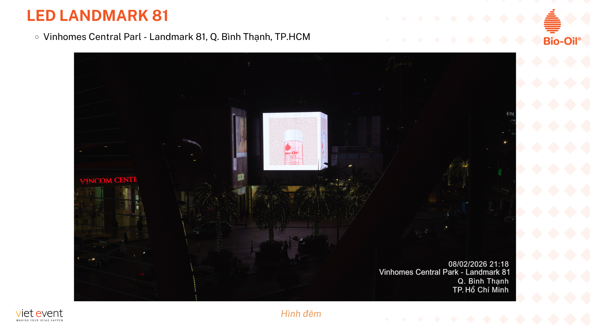 Viet Event tự hào đồng hành cùng chiến dịch OOH Bio-Oil mang đến hình ảnh quảng cáo rực rỡ trên hệ thống màn hình LED Landmark 81, góp phần nâng tầm thương hiệu trên thị trường.