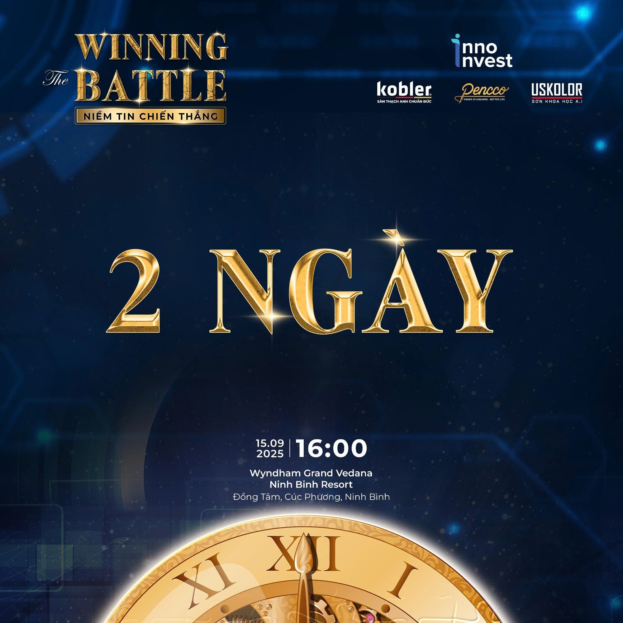 Tối ngày 15/9/2025, tại Wyndham Grand Vedana Ninh Bình, Viet Event (VE) đã thực hiện thành công chương trình Đại nhạc hội “Winning The Battle” – sự kiện thường niên quy mô lớn do Tập đoàn Inno Invest tổ chức, quy tụ hàng nghìn khách mời và hệ thống nhà phân phối trên toàn quốc.