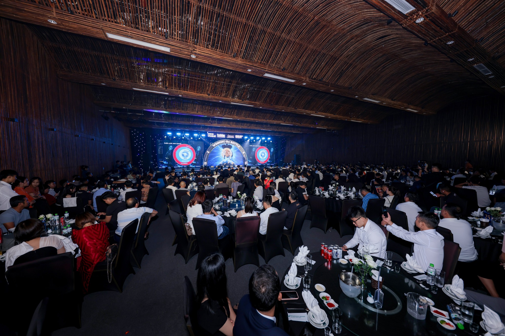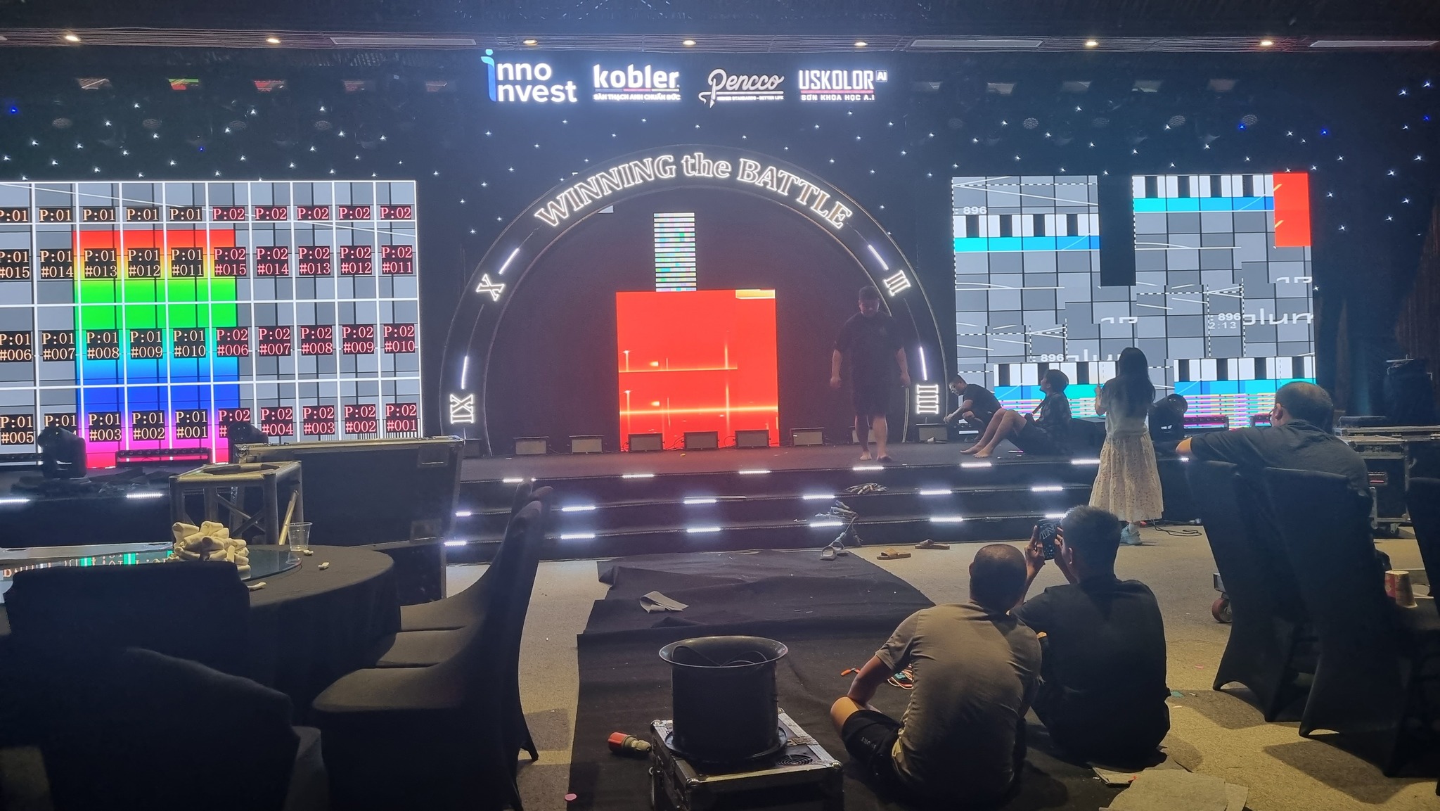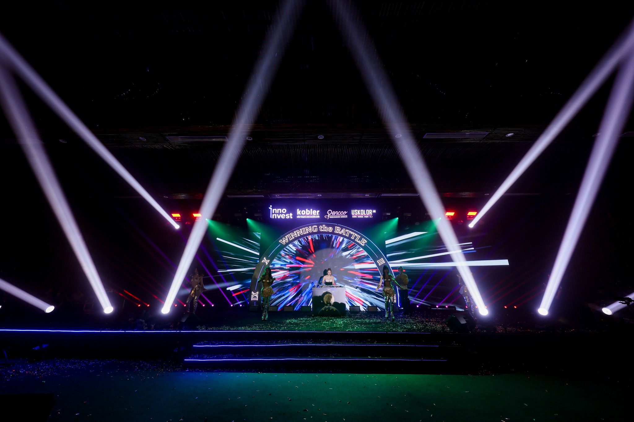 Không gian sự kiện mang phong cách hiện đại, tinh tế và đậm chất “Inno Invest”, kết hợp cùng các mảng ánh sáng rực rỡ, tạo nên khung cảnh lung linh và đầy cảm hứng – đúng tinh thần “Winning The Battle”.