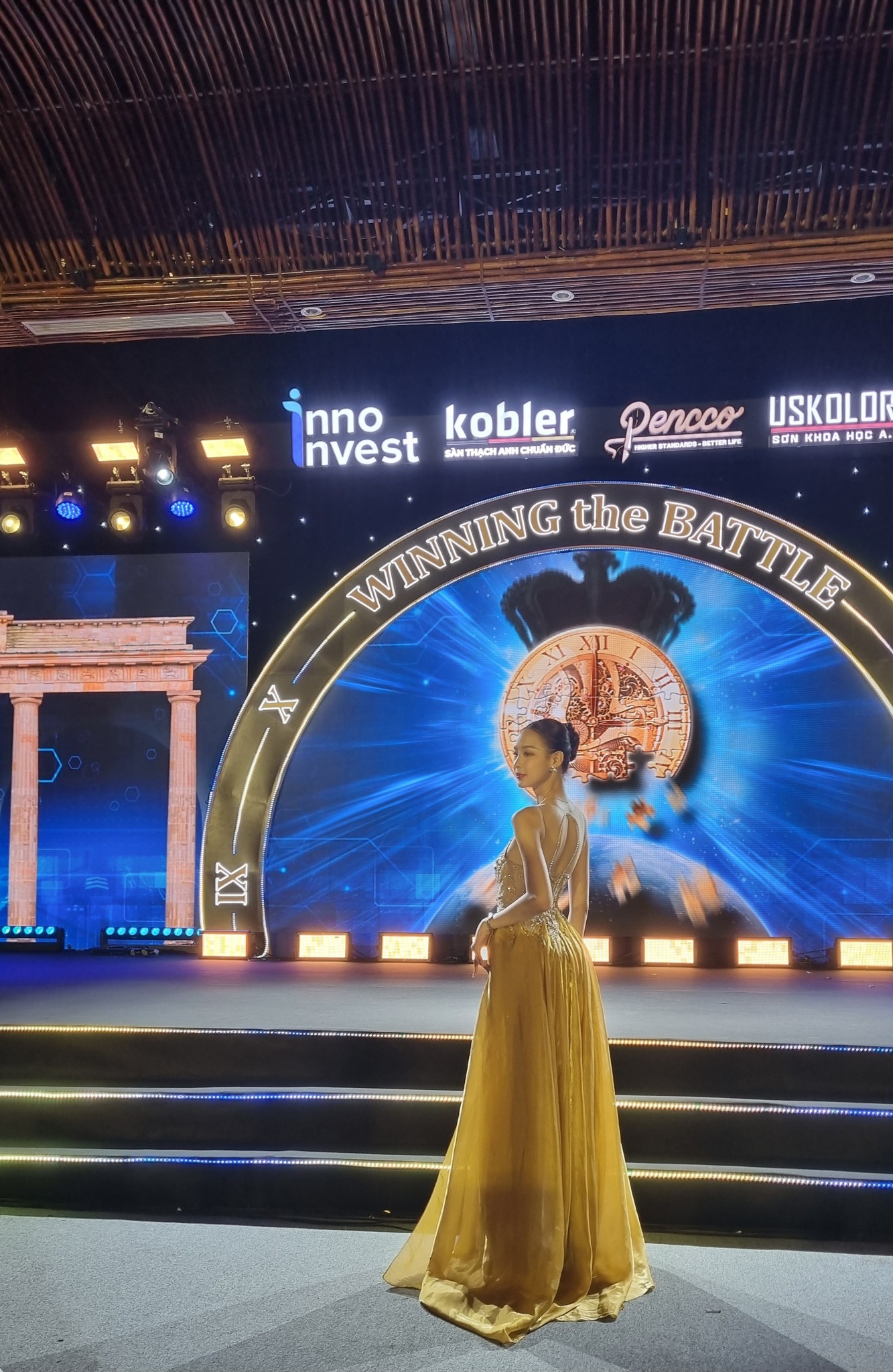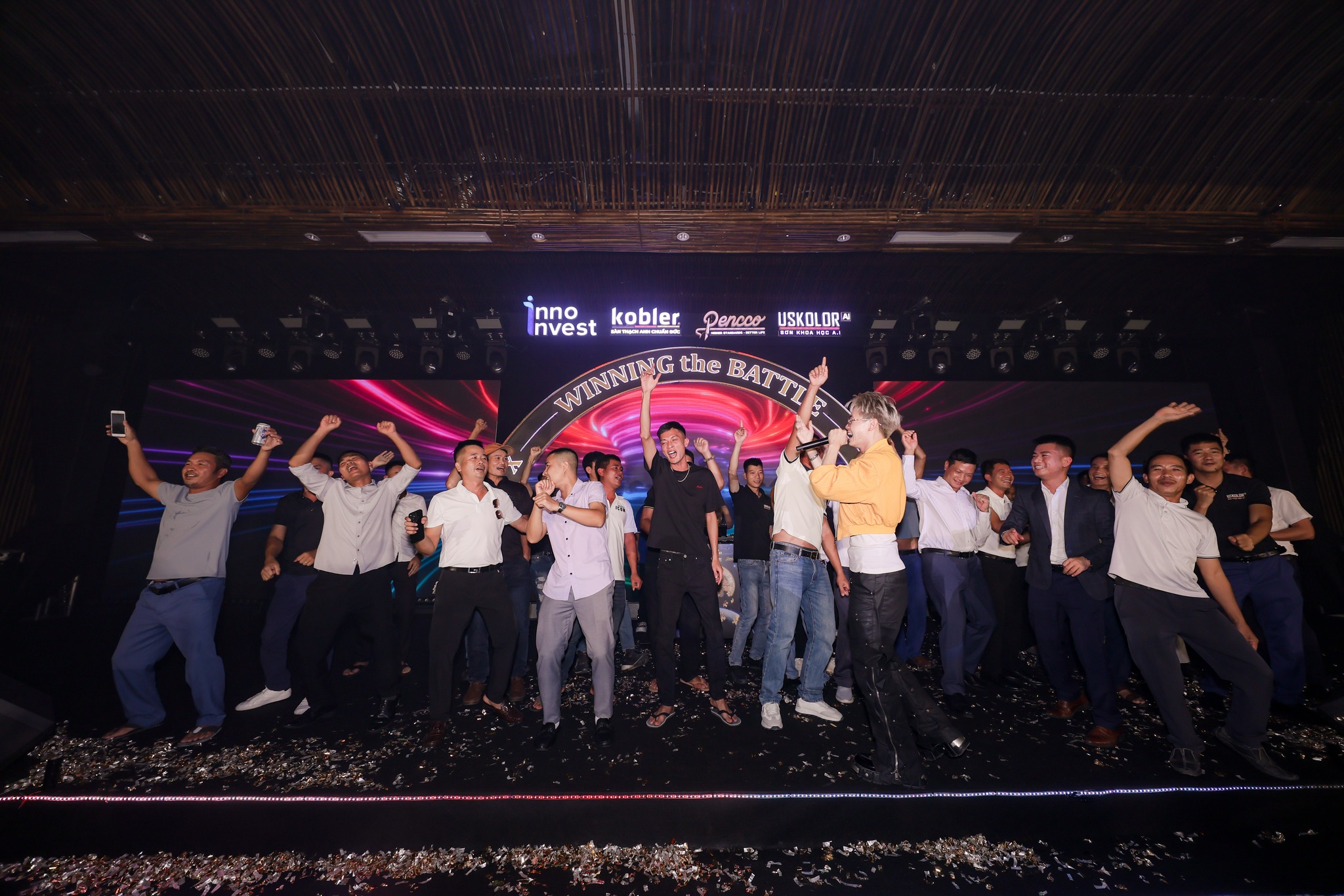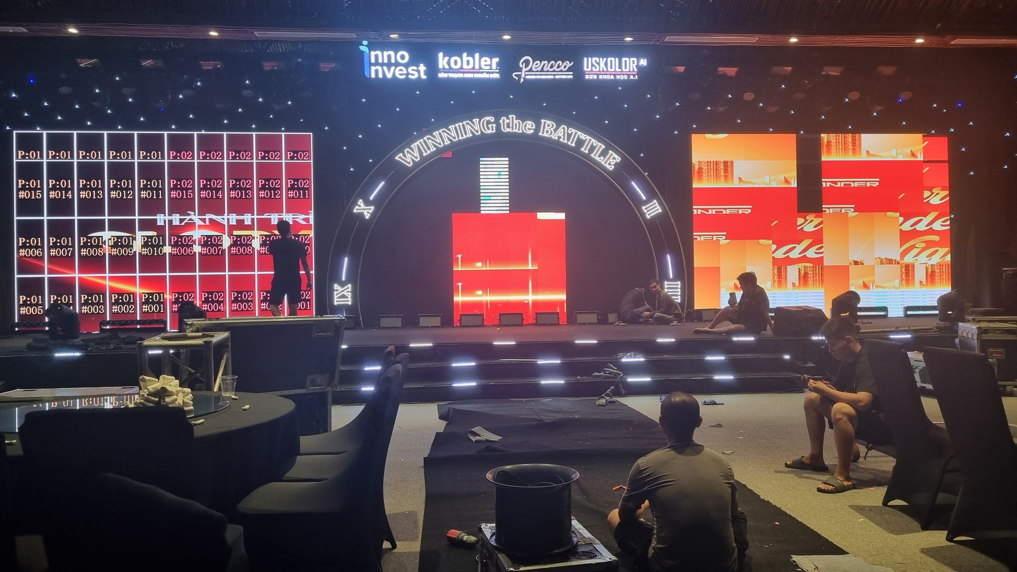 Không gian sự kiện mang phong cách hiện đại, tinh tế và đậm chất “Inno Invest”, kết hợp cùng các mảng ánh sáng rực rỡ, tạo nên khung cảnh lung linh và đầy cảm hứng – đúng tinh thần “Winning The Battle”.